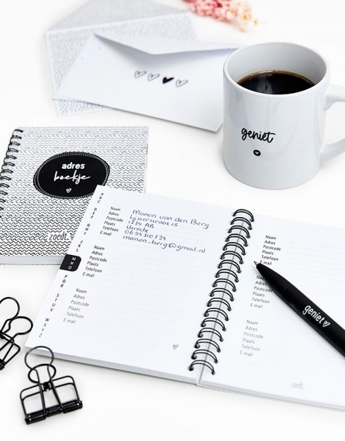 Houd al je contactgegevens overzichtelijk bij met dit stijlvolle adresboekje van Zoedt. Voorzien van een leuk zwart-wit patroon en een praktische ringband, perfect voor dagelijks gebruik.