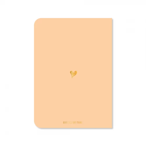 Papier: 300 grams (warm wit) papier met een matte uitstraling, afgewerkt met goudfolie en aan de buitenzijden afgewerkt met ronde hoekjes