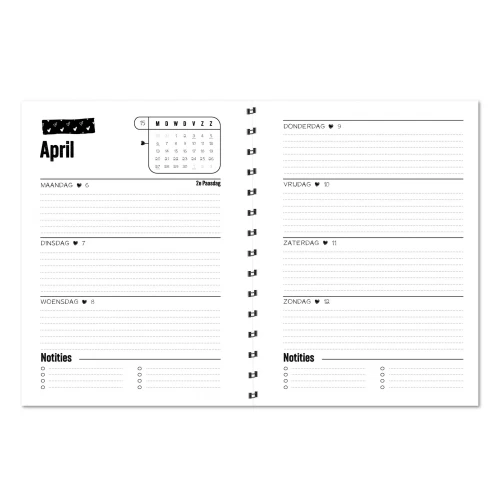 In de agenda vind je invulbladen en veel ruimte voor notities;