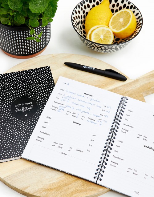 In het boekje is ruimte om jouw levensstijl te beschrijven, hoe het nu is en hoe je het graag zou willen. Ook kun je concrete doelen uitwerken. Daarnaast noteer je een aantal gegevens zoals je gewicht, omtrekken en vetpercentage. Vervolgens noteer je elke dag je voeding, beweging, groente/fruit en water. Na elke week is er een evaluatie hoe het ging, hoe het gaat met je doelen, wat aandachtspunten zijn en kun je je gewicht etc. invullen. Achterin het boekje is ruimte om je prestaties bij te houden, zoals voor- en nafoto's en grafieken voor bijvoorbeeld je gewichtsverlies, buikomtrek.