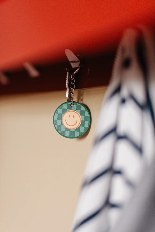 Breng een glimlach in iemands dag met deze vrolijke sleutelhanger met smiley. Deze stevige en stijlvolle sleutelhanger is het perfecte kleine cadeautje voor bijvoorbeeld de juf of meester als bedankje of als oppepper voor iemand die het verdient. Deze ronde sleutelhanger met smiley past perfect aan elke sleutelbos of tas. Een klein gebaar met groot plezier!