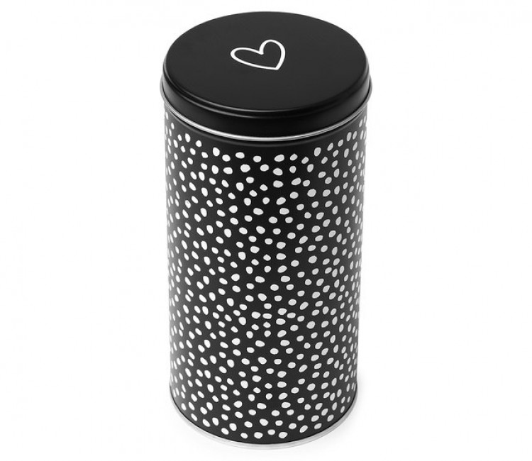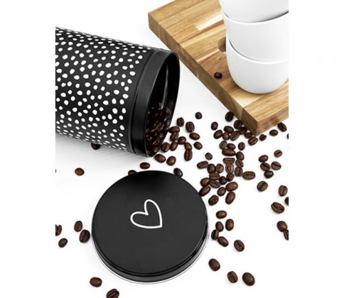 Een echte koffieliefhebber? Dan mag dit koffieblik van Zoedt bij jou in de kast niet ontbreken. En hij is zo leuk, dat hij eigenlijk niet in de kast hoort, maar verdient een mooie plekje bij jou koffiehoekje op tafel of het aanrecht. Het koffieblik heeft een mooie mat zwarte uitstraling en heeft aan de zijkant een stippen patroon. Bovenop de trommel staat een hartje. Cadeautip: vul het koffieblik met koffiebonen, koffiepads of cups en geef het cadeau!
